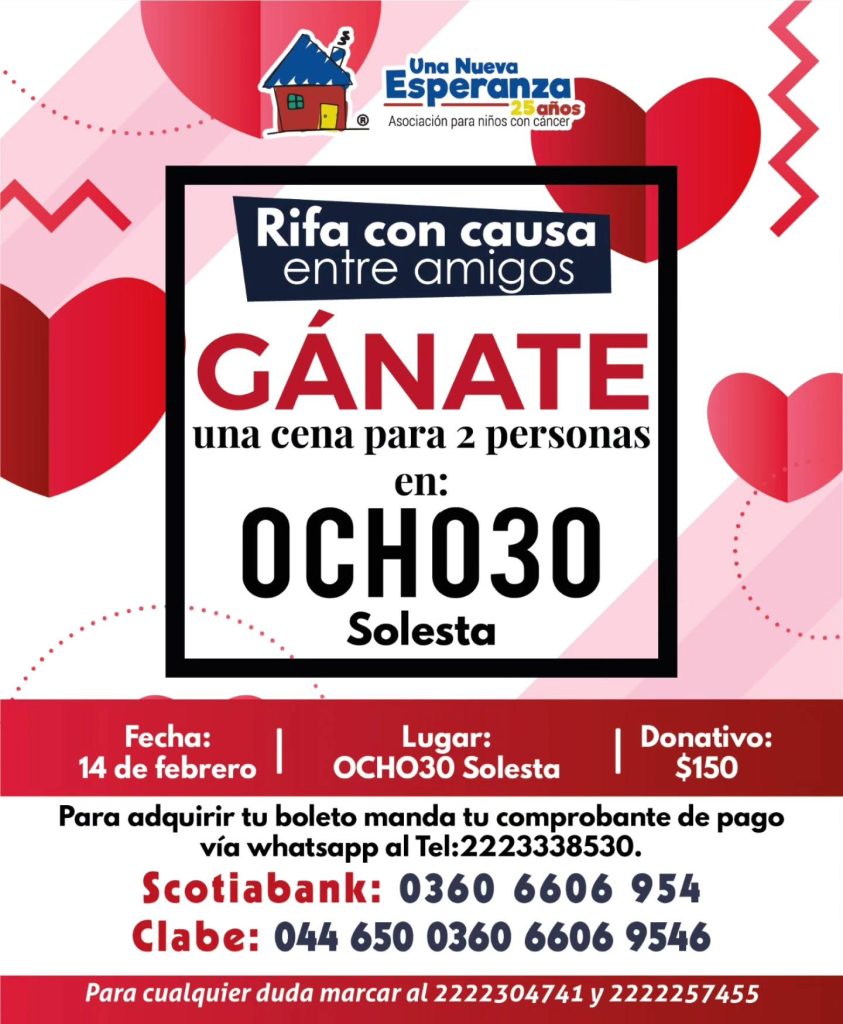 ¡Este 14 de febrero festeja a lo grande ayudando! Comunícate al 222 304 741 para adquirir tu boleto. OCHO30 Solesta Fecha: