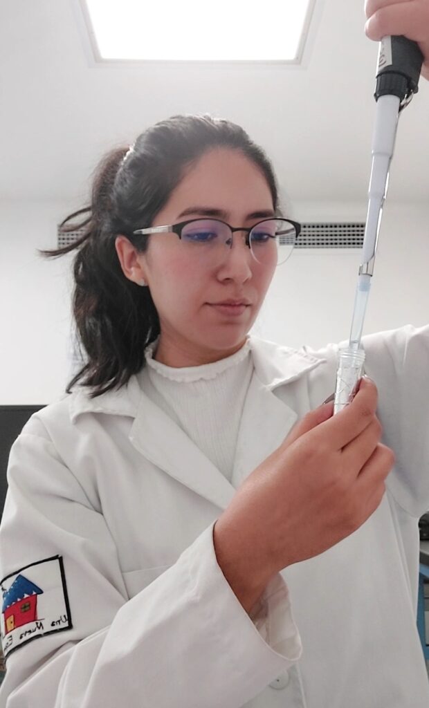 Realizó sus prácticas profesionales trabajando en investigaciones relacionadas con el envejecimiento celular, manejando programas bioinformáticos. Fue becaria por la BUAP para los estudios de licenciatura, y por CONAHCyT y UPAEP para los de maestría. El trabajo de su tesis, realizado en el Centro de Investigación Oncológica Una Nueva Esperanza-UPAEP (CIO-UNE-UPAEP) fue: “Elucidación del papel del SNORD44 en cáncer con enfoque en líneas celulares”, mismo que forma parte del proyecto financiado por Conahcyt, otorgado a la Dra. Ma. del Rocío Baños Lara (MRBL; MACROPRONAII-SALUD-2019. Propuesta 303083).